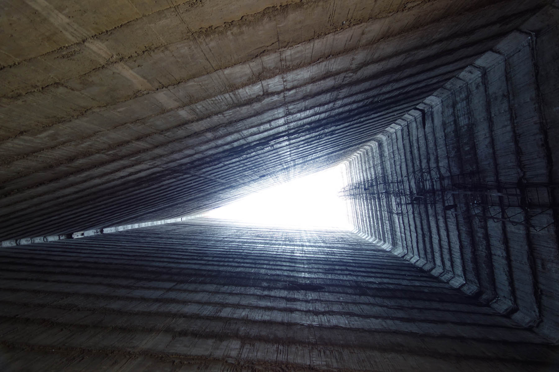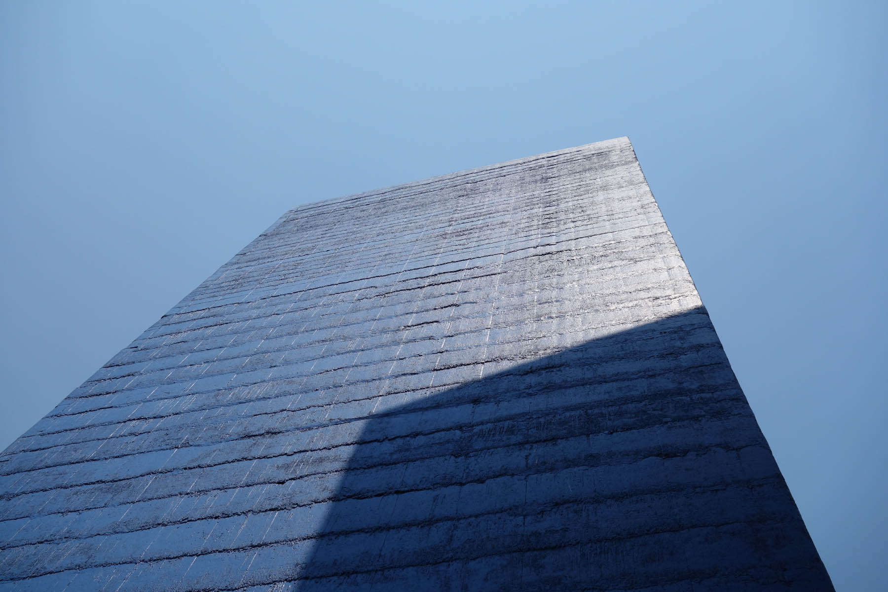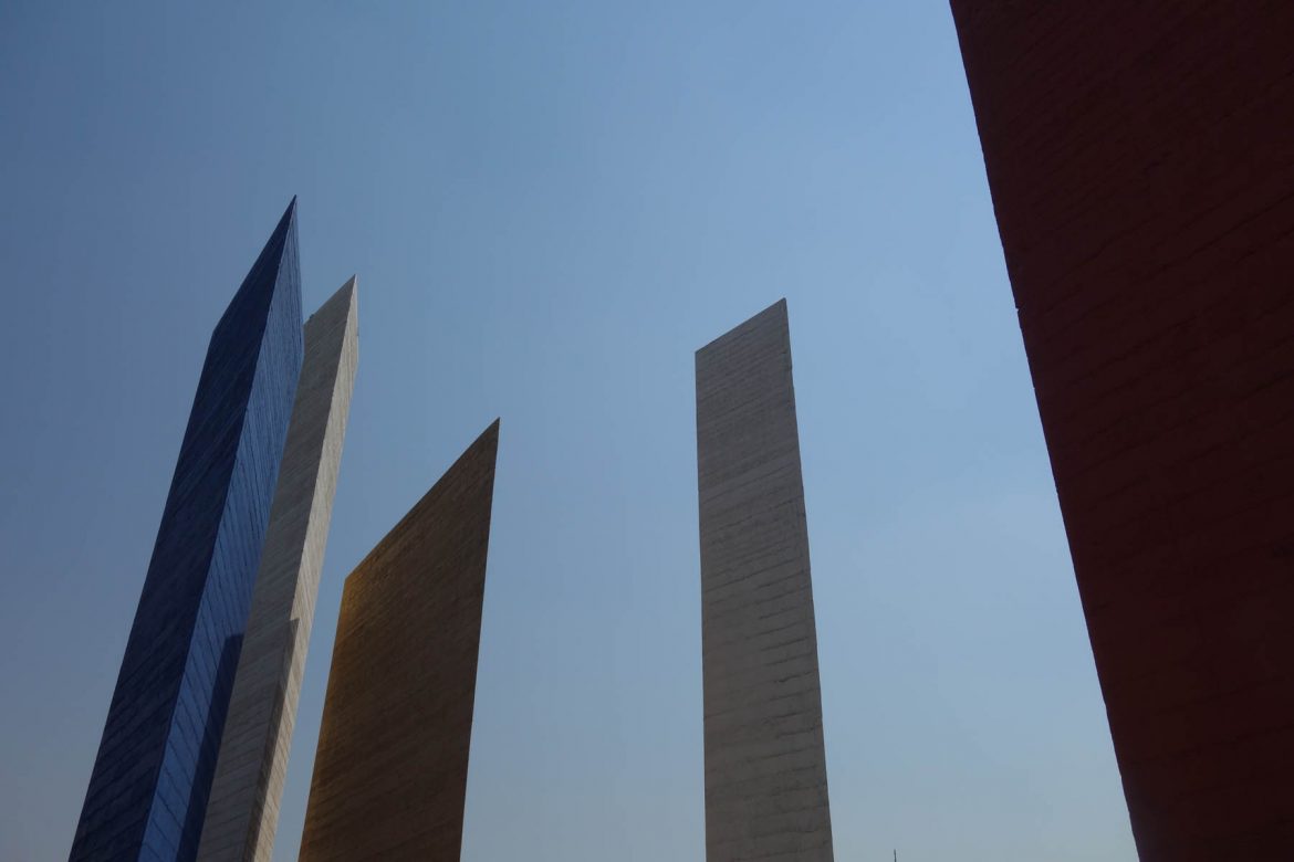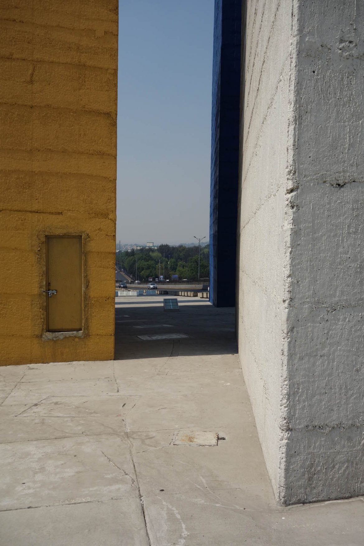 They are standing in the middle of a kind of immense traffic island: the guards of North Mexico City. Five towers in the colors yellow, white, blue and red seem to soar on an elevation and are passed by hundreds of cars every day. The triangular, urban sculptures point with their head south towards the city center of Mexico City. The strong colors are recognizable from a great distance and represent an important point of orientation in the region. Depending on the viewing angle, the towers, which are between thirty and fifty meters high, change their appearance. Sometimes they look narrow and high, sometimes deep and wide. Close up, the horizontal traces of the formwork stages enhance the visual impression of the height.